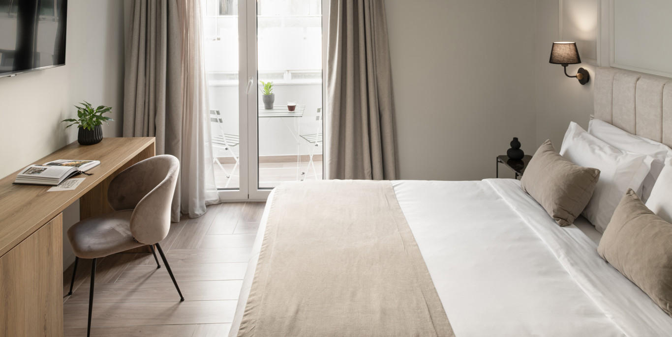 A stylish room gleaming with elegance and comfort welcomes the guests with soft cream hues, chic lines, and city views from the balcony. Plush linens, a cushy double bed, a sumptuous bathroom and classy decoration details illustrate a refined ambiance which relaxes the body and unloads the mind. This elegant room is the perfect choice for couples or solo travelers who want to take advantage of an unwinding urban stay.